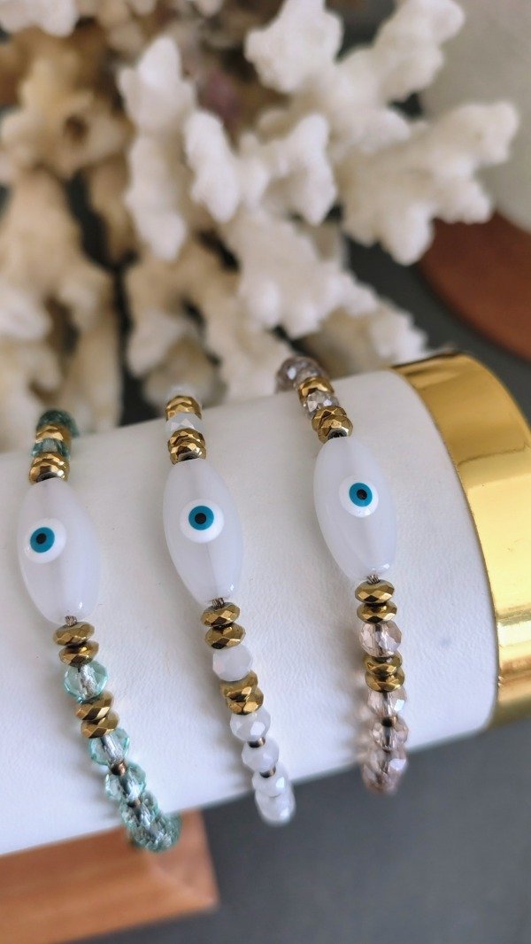 Pulsera regulable de cristales y ojo turco de murano